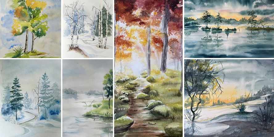 Für Erwachsene und Jugendliche, die etwas über den Aufbau einer Aquarelllandschaft erfahren möchten und Freude am Auftragen der Farbe haben.